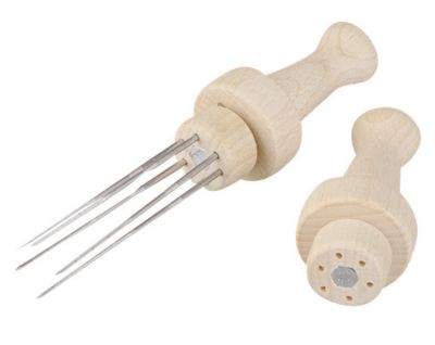 Manche en bois, avec embout à visser, pour insérer six aiguilles à feutrer (livré sans aiguilles). Longueur du manche : 5,5 cm.