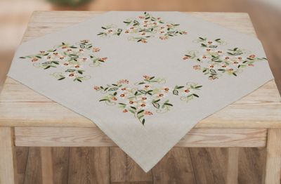 Nappe à broder "marguerites", à broder au point de tige, point plat, point de nœud et point de bouclette. Motif préimprimé, ourlé prêt à l’emploi. Kit complet : notice explicative, fils, aiguille à broder. Couleur du tissu : lin. Dimensions : 72 x 72 cm. Composition : tissu 50 % lin, 50 % coton, fils 100 % coton.