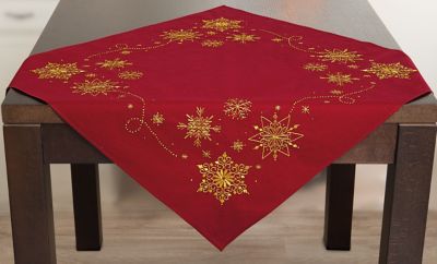 Nappe à broder "merveille cristalline", à broder au point lancé, point de bouclette, point de nœud et point plat. Motif préimprimé, ourlé prêt à l’emploi. Kit complet : notice explicative, fils, aiguille à broder. Couleur du tissu : rouge. Dimensions : 72 x 72 cm. Composition : tissu et fils 100 % coton.