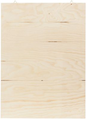 Panneau en bois, en bois brut, avec attaches, à peindre et décorer soi-même, dim. : 40 x 55 cm, épaisseur : 8 mm. Non peint, sans décoration.
