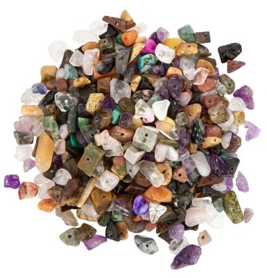 Mélange de perles en pierres semi-précieuses, selon disponibilité, couleur : multicolore, dimensions : 5-10 mm, contenu : 50 g = env. 175 perles.