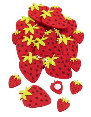 Pièces à disperser "fraises" en feutrine, avec point de colle, couleurs : rouge et vert, dimensions : 2 cm et 4 cm, contenu : 24 pièces.