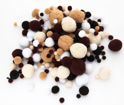 Pompons, couleur : tons marron, dimension : 4-25 mm, contenu : 400 pièces. Composition : 100 % polyester.