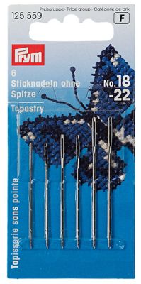 Prym Aiguilles à broder sans pointe, idéal pour broder sur des toiles Aïda, tissus canevas, etc. Pour faciliter le passage du fil, les aiguilles disposent d'un chas plus grand, long et plus lisse. Dimensions : 40 x 0,90 mm, 43 x 1,00 mmm, 50 x 1,20 mm, set de 6 pièces (2 pièces par dimension).