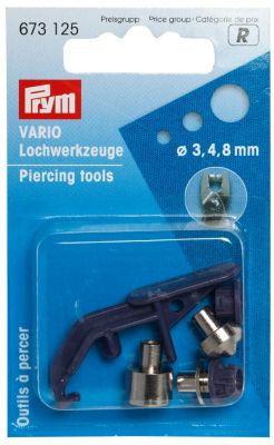 Prym Outils de perforation Vario, pour la pince Vario, dim. : 3 mm, 4 mm, 8 mm Ø. Ces outils conviennent pour la perforation de textiles, cuir, film plastique, etc.
