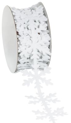 Ruban en feutrine "flocons", couleur : blanc, largeur : 40 mm, 3 m par rouleau. Composition : 100 % polyester.