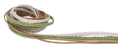 Set de rubans en cuir, couleurs : vert-marron, largeur : 2–3 mm, longueur : ruban de 50 cm = 2,50 m au total, contenu : 3 rubans tressés, 2 rubans lisses.