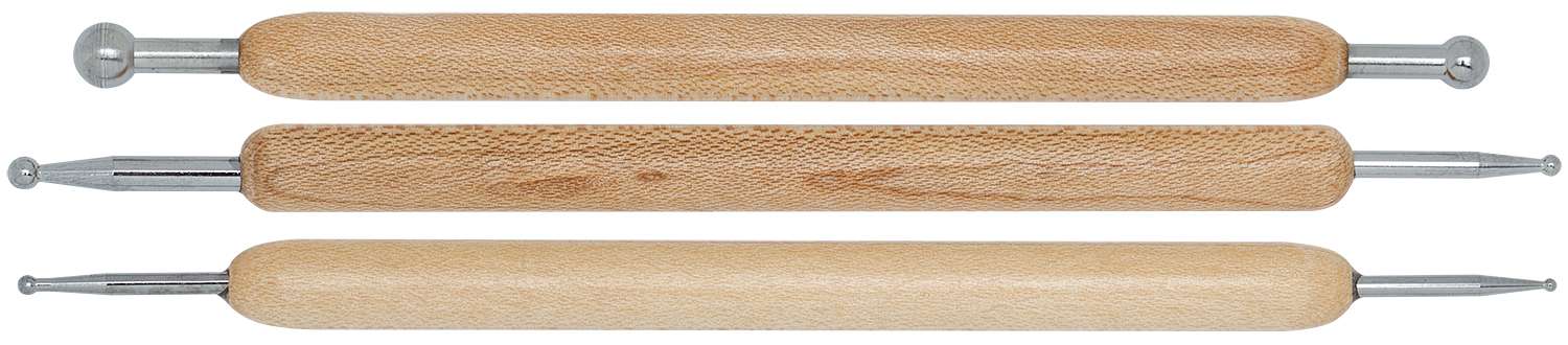 Stylets d'embossage, dim. des têtes rondes : 1,2 - 6 mm, longueur : 13-14 cm, contenu : 3 pièces.