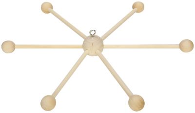 Support pour mobile, en bois brut, à suspendre, avec des boules en bois, dim. : 35 cm Ø.