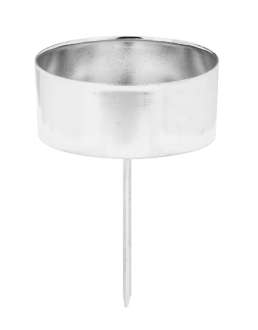 Supports de bougies avec pic, en métal, pour des bougies chauffe-plat, couleur : argenté, dim. : 4 cm Ø, longueur pic : 4,5 cm, contenu : 4 pièces.