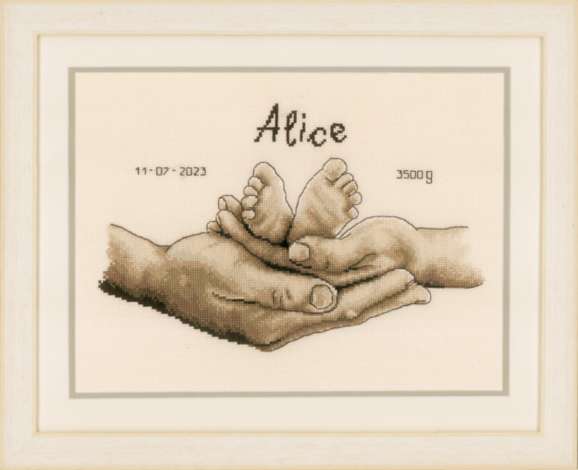 Tableau à broder "en sécurité", à broder au point de croix et point lancé selon la grille (env. 5,4 points/cm). Kit complet : notice explicative, grille, fils, aiguille à broder, alphabet inclus. Couleur du tissu : écru. Dimensions : 27 x 18 cm, broderie 24 x 15 cm. Composition : tissu et fils 100 % coton.