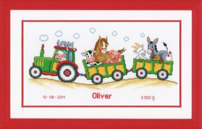 Tableau de naissance à broder "animaux de la ferme", 36 x 19 cm