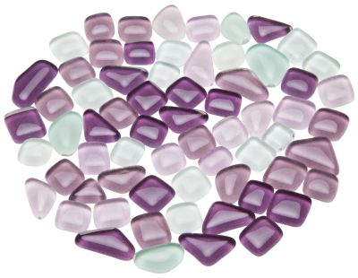 Tesselles en verre souple, résistante au gel et à la chaleur, formes irrégulières, couleur : d'lilas, violet, lilas et blanc, dimensions : 10-20 mm, épaisseur : 3 mm, contenu : 200 g = env. 140 pièces.