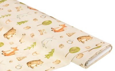 Tissu coton "animaux en peluche", écru naturel/coloré