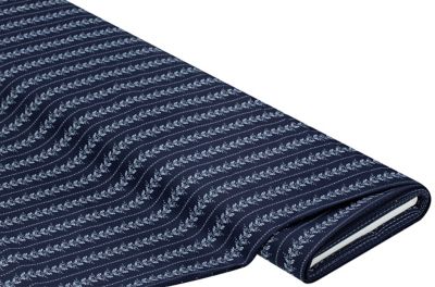 Tissu coton "bordure florale", bleu marine/bleu clair