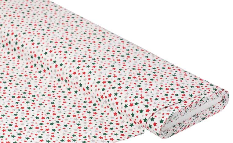 Tissu coton "étoiles", blanc/vert/rouge/gris, de la série "Mona"