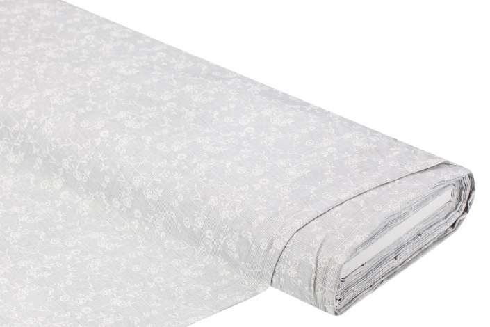 Tissu coton "Glencheck/fleurs", gris clair/blanc cassé.