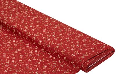 Exclusivité buttinette : Tissu coton « maison de campagne », rouge bordeaux/crème, de la série "Mona", dim. des fleurs à trois pétales : 1,5 x 1 cm.