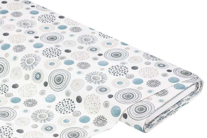 Tissu coton mélangé enduit "cercles et pois", gris/multicolore