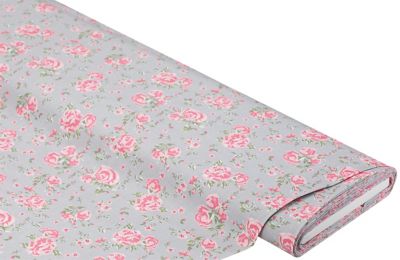 Exclusivité buttinette : Tissu coton « roses », gris/multicolore, de la série Mona, d'un coton particulièrement fin et doux, dim. fleur : 2–3,5 cm Ø.