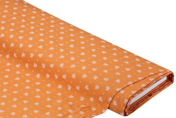 Tissu coton « roses », orange/blanc, dim. roses : 1,5 cm.