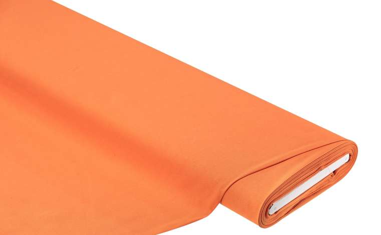 Exclusivité buttinette : Tissu coton "uni", couleur : orange, de la série "Dana", d’un coton doux, teinté, largeur : 150 cm, poids : env. 120 g/m². Composition : 100 % coton.
