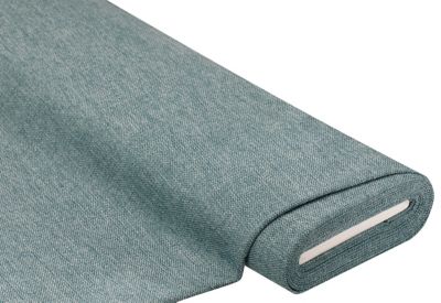 Tissu d'ameublement "Graz", pétrole clair chiné, avec envers en feutrine noire.