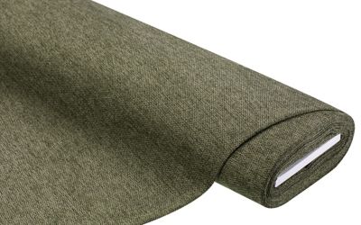 Tissu d'ameublement "Graz", vert chiné, avec un envers en feutrine noire.