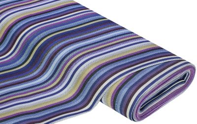 Tissu d'extérieur "Madrid" à rayures, couleur : bleu/coloré, enduit de téflon, hydrofuge, résistance à la lumière : très bonne, pour voiles d'ombrage, parasols, coussins, etc., rayures verticales, largeur : 160 cm, poids : env. 240 g/m². Composition : 80 % polyacrylique, 20 % polyester.