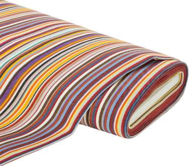 Tissu d'extérieur "Madrid" à rayures, couleur : multicolore, enduit de téflon, hydrofuge, résistance à la lumière : très bonne, pour voiles d'ombrage, parasols, coussins, etc., rayures verticales, largeur : 160 cm, poids : env. 240 g/m². Composition : 80 % polyacrylique, 20 % polyester.