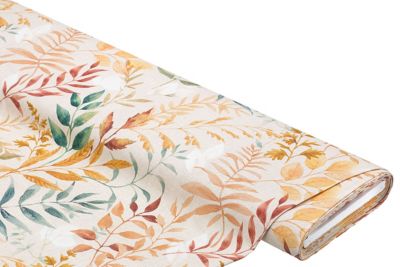 Tissu de décoration "feuilles", écru naturel/coloré, série "Lorena"