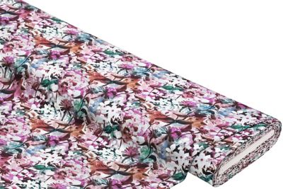 Avec cette mode cousue main dans ce jersey extensible chic, vous êtes assurée de faire une entrée remarquée ! Ce jersey doux séduit tant par son imprimé floral intégral, net et vivant grâce à l'impression numérique, que par son excellent confort : le jersey de coton extensible est agréable au toucher, augmente bien l'humidité et, grâce à sa teneur en élasthanne, est merveilleusement souple et extensible - parfait pour des tenues de bureau confortables et élégantes ou des vêtements de tous les jours.