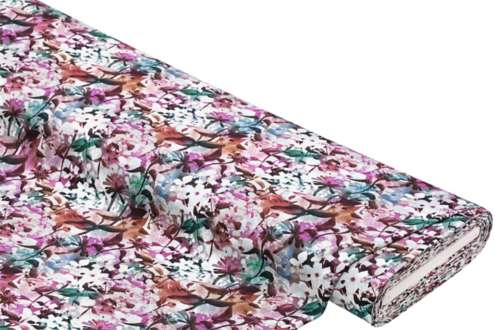 Tissu jersey de coton à impression numérique "fleurs de champs" avec élasthanne, violet/coloré