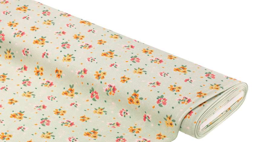 Tissu jersey de coton gaufré "fleurs", menthe/coloré