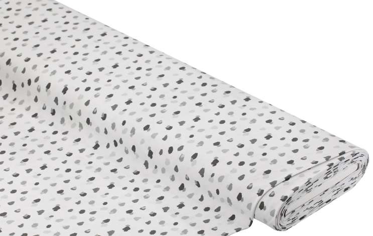 Tissu jersey en coton "pois léopard", gris/multicolore, avec élasthanne, bi-extensible, dim. motif : 5–15 mm Ø.