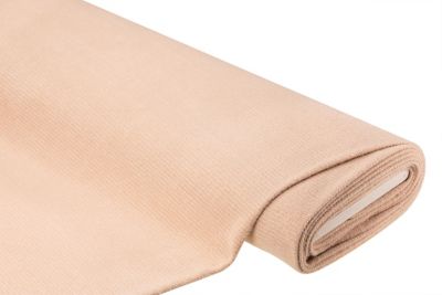 Tissu maille, couleur : rose pâle clair, extensible en largeur, largeur : 155 cm, poids : env. 280 g/m². Composition : 65 % polyester, 35 % polyamide.