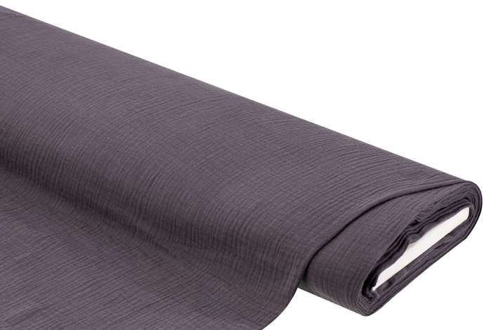 Tissu mousseline/double gaze, couleur : anthracite, largeur : 130 cm, poids : env. 120 g/m². Composition : 100 % coton.