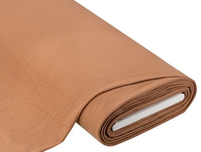 Tissu mousseline/double gaze, couleur : camel, largeur : 130 cm, poids : env. 120 g/m². Composition : 100 % coton.
