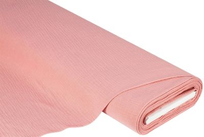 Tissu mousseline/double gaze, couleur : rose clair, largeur : 130 cm, poids : env. 120 g/m². Composition : 100 % coton.