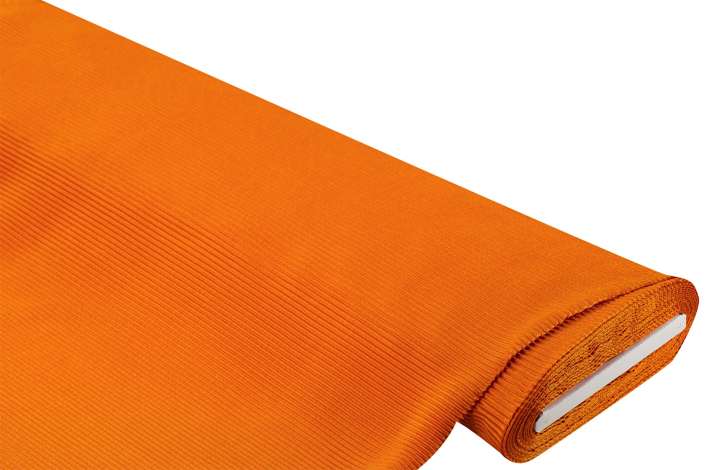 Tissu plissé, couleur : orange, plis dans le sens de la largeur, largeur plis : env. 3 mm, largeur : 155 cm, poids : env. 135 g/m². Composition : 100 % polyester.