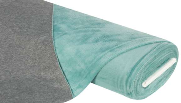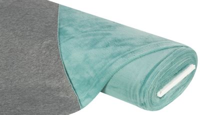 Tissu polaire "bicolore" douce et moelleuse avec côté sweat gris chiné et côté polaire lagon, de la série "Alpes", élastique, indéformable, épaisseur : 4 mm, largeur : 150 cm, poids : env. 330 g/m², Composition : 65 % polyester, 35 % coton.