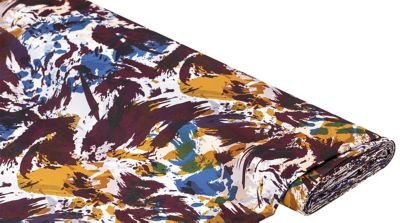 Que ce soit pour une fête de famille, le bureau ou l'apéro avec amis : avec un chemisier ou une robe fait main, vous êtes toujours bien vêtu. Ce tissu est parfait pour cela, car il est facile à travailler, avec un toucher agréable et une texture douce et fluide. De plus, l'imprimé abstrait à la mode attire tous les regards. Grâce à sa composition, le tissu ne se froisse pas et sèche rapidement après le lavage.