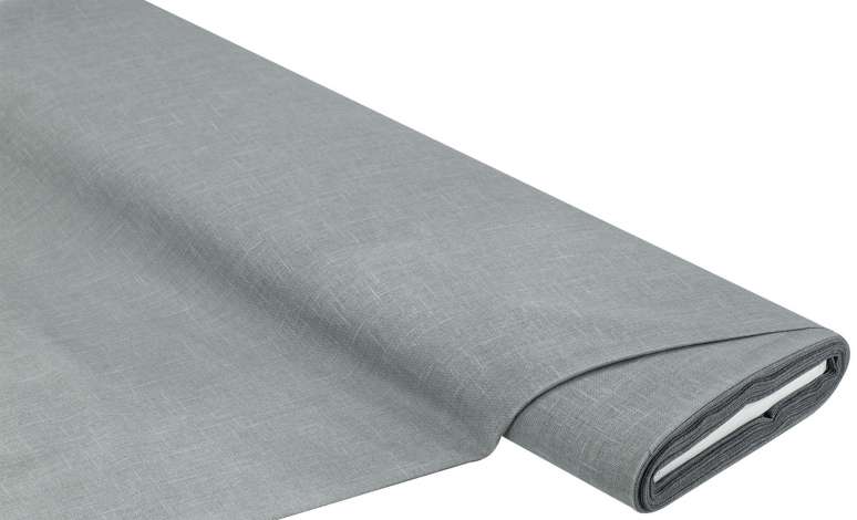 Tissu pour rideaux "aspect lin", gris, semi-transparent, utilisable des deux côtés.