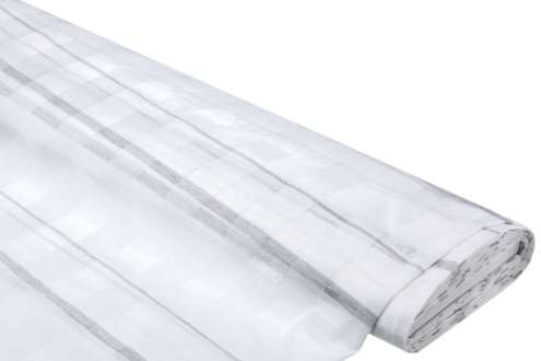 Tissu pour rideaux "carreaux", couleur : blanc/gris/transparent, rayures blanches : dans le sens de la longueur, rayures grises : dans le sens de la largeur, largeur rayures blanches : 4 cm, rayures grises : 1,2 cm, largeur : 150 cm, poids : env. 50 g/m². Composition : 100 % polyester.