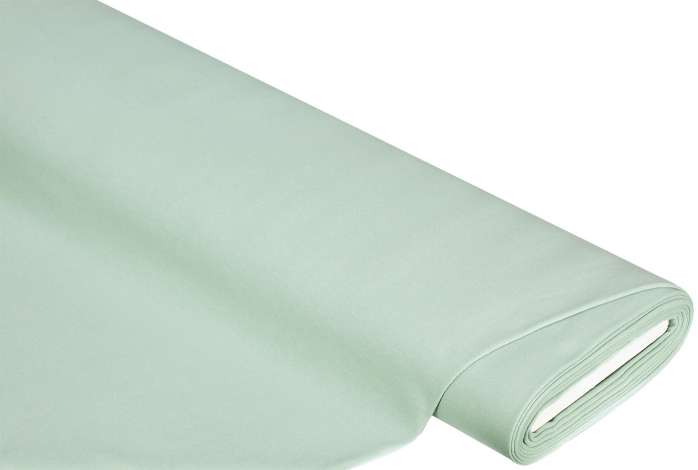 Tissu sweat de coton "basique", couleur : menthe à l'eau, légèrement extensible, largeur : 170 cm, poids : env. 240 g/m². Rétrécissement : 4-6 %. Composition : 100 % coton.