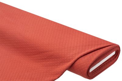 Tissu sweat matelassé, couleur : terracotta, extensible en largeur, dimension des losanges : 1 x 1 cm, largeur : 150 cm, poids : env. 240 g/m². Retrait : 7 % dans la longueur. Composition : 80 % coton, 20 % polyester.