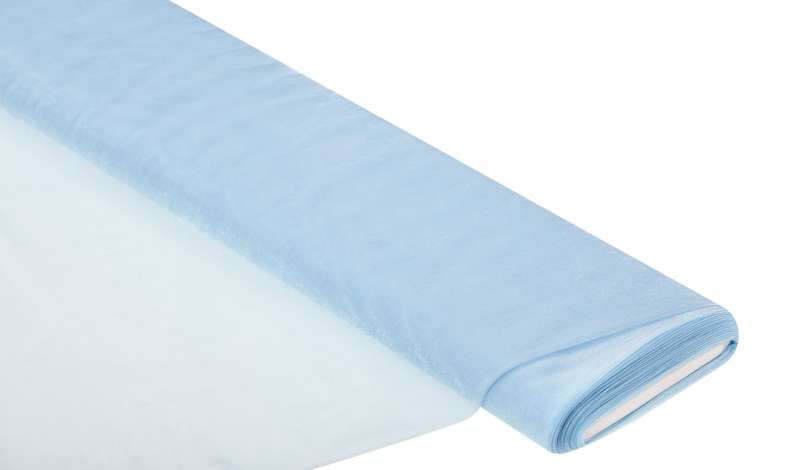Tissu tulle souple, avec légère brillance, transparent, couleur : bleu clair, largeur : 150 cm, poids : env. 30 g/m². Composition : 100 % polyamide.
