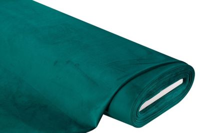 Tissu velours d’ameublement "Luxor", couleur : pétrole, avec surface veloutée et envers en mailles noir (légèrement extensible en largeur), résistance à l'abrasion : > 50 000 tours, résistance à la lumière : assez bonne, largeur : 140 cm, poids : env. 320 g/m². Composition : 100 % polyester.