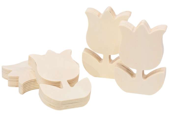 Tulipes en bois, 12 x 8 cm, 4 pièces
