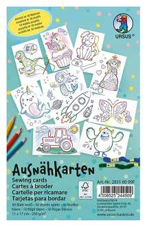 Ursus Cartes à coudre, dimension : 11 x 17 cm, grammage : 250 g/m² , contenu : 50 cartes en 10 motifs différents.